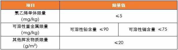 ② 聚氯乙烯人造革类材料有害物质限量应符合GB 21550(下表)的规定: